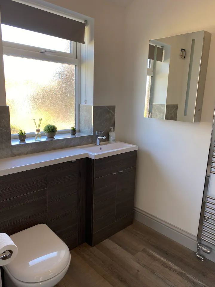 This Airbnb has a sleek, modern kitchen fully equipped, with a stylish lounge perfect for a base to explore the surrounding area, close to Cambridge, Duxford and 40 mins train ride from London.  This Airbnb boast of a contemporary bathroom.